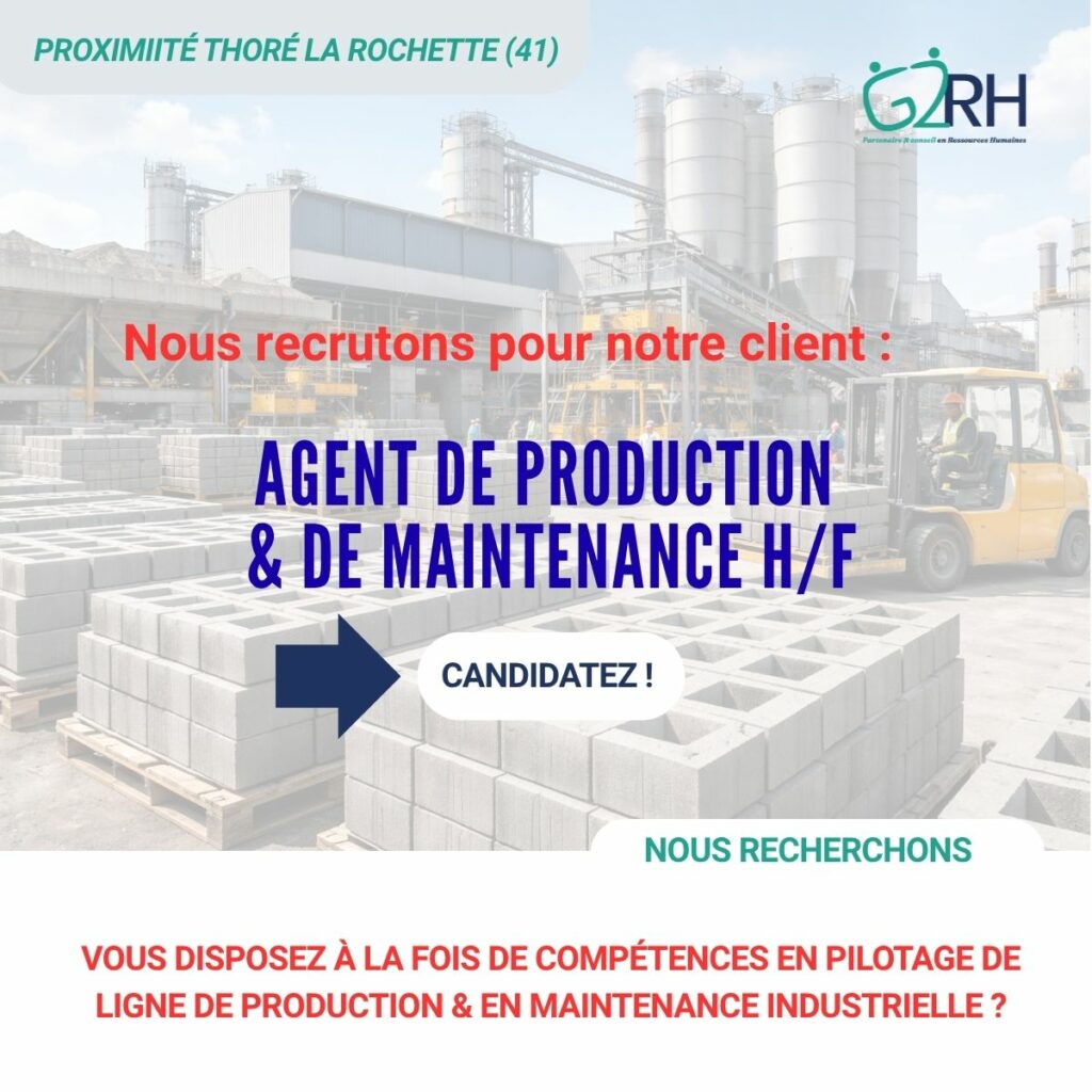 Lucie Lurot, consultante pour le cabinet, recrute aujourd’hui pour le compte de son client, un groupe familial local reconnu pour son expertise dans la fabrication d’équipements destinés aux secteurs des travaux publics, du BTP et du génie civil, un(e) Agent de production & de maintenance H/F en CDI, pour l’un de ses sites historiques.