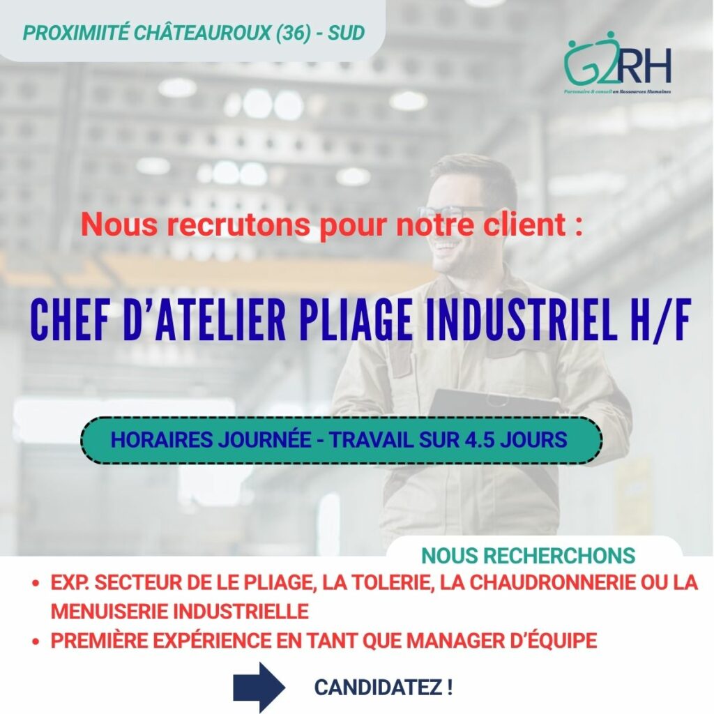 Lucie Lurot, consultante au sein du cabinet G2RH, accompagne une entreprise à taille humaine spécialisée dans la conception et la fabrication d’équipements de façade et de murs rideaux, dans le recrutement de son Chef d’atelier pliage industriel H/F.