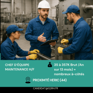 Vous êtes titulaire d’une formation technique de niveau BAC Pro à BTS, spécialisée en maintenance industrielle ou en électrotechnique. Fort d’une expérience réussie de plus de cinq ans en maintenance industrielle, idéalement dans le secteur agroalimentaire, vous avez déjà exercé des responsabilités managériales ou êtes désireux de développer vos compétences en management. Vos compétences techniques englobent la mécanique, l’électricité et l’automatisme, vous permettant de gérer et d’optimiser efficacement les installations. Reconnu pour votre aisance relationnelle et votre rigueur, vous faites preuve d’un véritable sens du leadership et savez instaurer une dynamique d’équipe positive, favorisant l’atteinte des objectifs opérationnels et la qualité du travail.