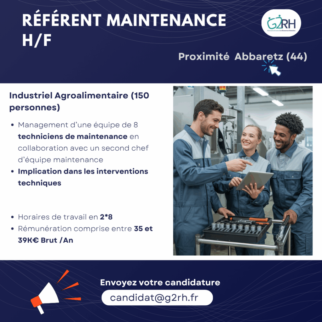 - Vous justifiez d’une expérience réussie de minimum 7 ans en maintenance industrielle idéalement dans le secteur agroalimentaire, en tant que technicien ou coordinateur de maintenance.