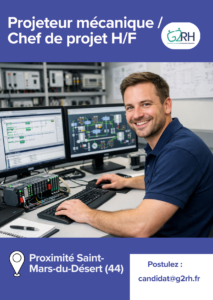 Ophélie BARAT, Consultante au cabinet, recherche un projeteur mécanique / Chef de projet H/F, pour son client (30 personnes), un fabricant de machines spéciales destinées au secteur agroalimentaire notamment, et situé à 15 minutes de Saint-Mars-du-Désert (44).