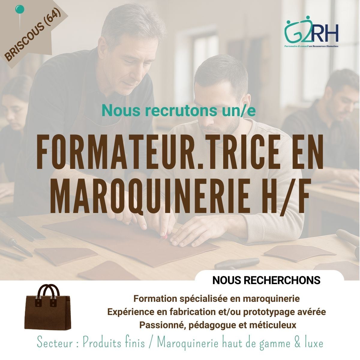 Lucie LUROT, consultante en recrutement au sein du cabinet G2RH, accompagne aujourd’hui un acteur reconnu de la maroquinerie haut de gamme et luxe dans le recrutement de son Formateur en Maroquinerie H/F