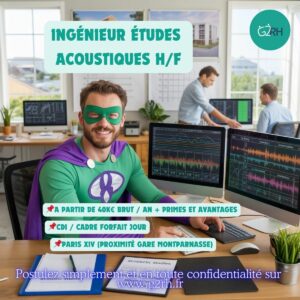 Gaël ROBIN, gérant du cabinet G2RH, recherche actuellement en exclusivité pour l’un de ses clients, Bureau d’études techniques (25 collaborateurs, 2 agences), spécialisé dans la réalisation d’études acoustiques, énergétiques et environnementales, un/une ingénieur études acoustiques H/F dans le cadre d’une création de poste.