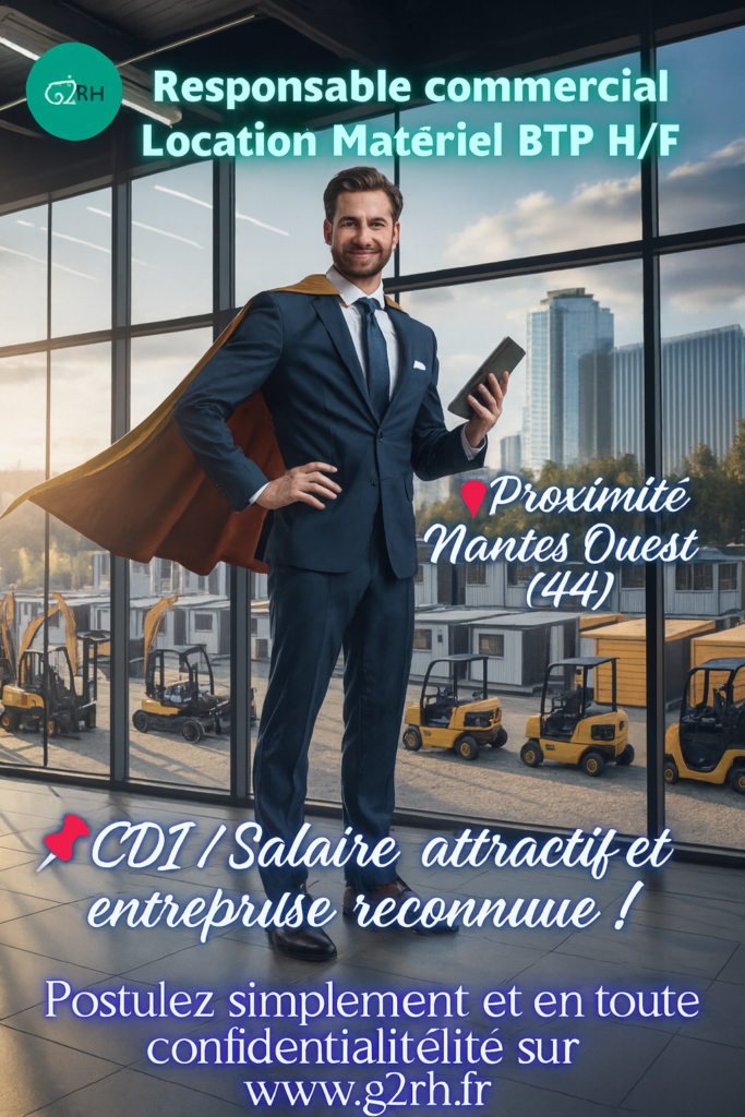 Gaël ROBIN, gérant et fondateur du cabinet G2RH, accompagne une entreprise locale en pleine croissance, spécialisée dans la location de véhicules utilitaires, d’engins de manutention/BTP de petites tailles et de bungalows aménageables. Rattachée à un groupe national solide, elle recherche son/sa Responsable commercial(e) Location Matériel BTP H/F pour renforcer son développement.
