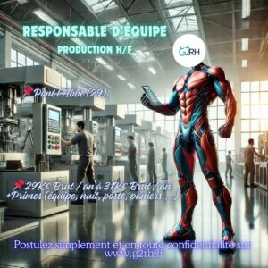 Gaël ROBIN, gérant du cabinet G2RH, recherche actuellement en exclusivité pour l’un de ses clients, site industriel spécialisé dans la fabrication de pièces techniques (secteur de la plasturgie) pour le secteur de l’agroalimentaire, un/une Responsable d’équipe H/F afin de renforcer son usine basée à Pont l’Abbé (29).