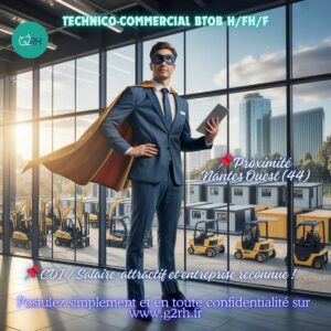 Gaël ROBIN, gérant et fondateur du cabinet G2RH, est actuellement missionné par l’un de ses clients, entreprise à taille humaine, spécialisée dans la location (VL d’entreprises, engins de manutention et de BTP de petites tailles, bungalows préfabriqués et aménageables) à destination des entreprises, filiale d’un groupe d’envergure nationale (300 personnes, 8 sociétés, 35 millions d’euros de CA) dans le cadre du recrutement de son/sa futur(e) Technico-commercial BtoB H/F.